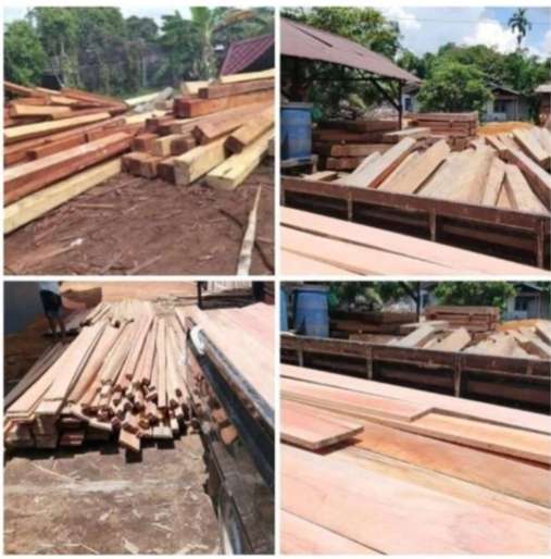 Berdasarkan dokumentasi yang beredar di media sosial, terlihat adanya tumpukan kayu dalam jumlah cukup besar di sebuah lokasi yang diduga berada di belakang sebuah bangunan tempat tinggal. Selain itu, tampak pula alat pemotong kayu jenis serkel yang mengindikasikan adanya aktivitas pengolahan kayu.