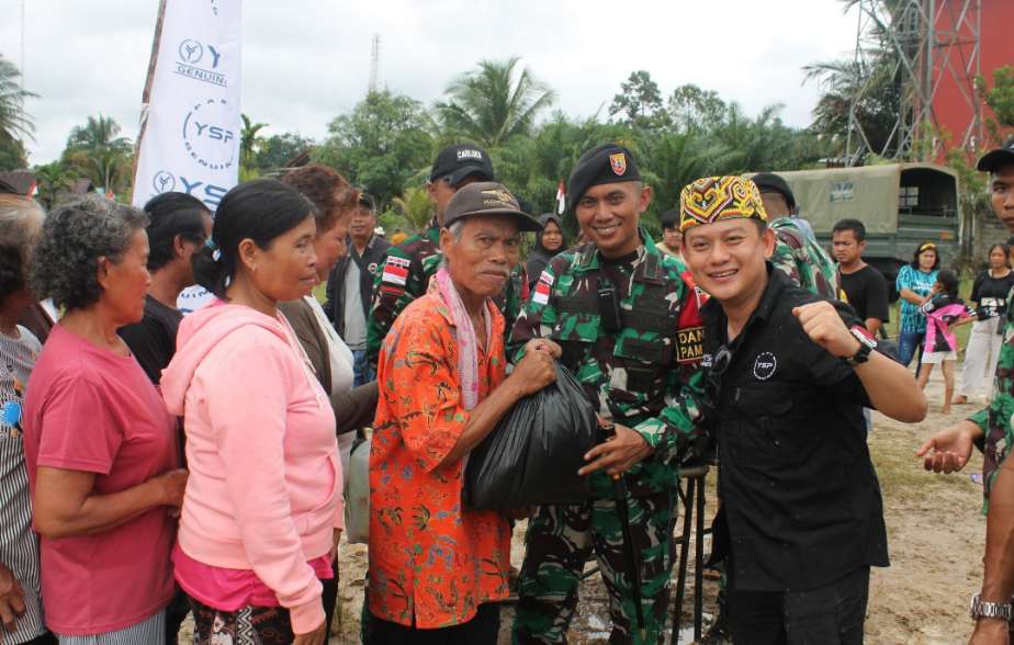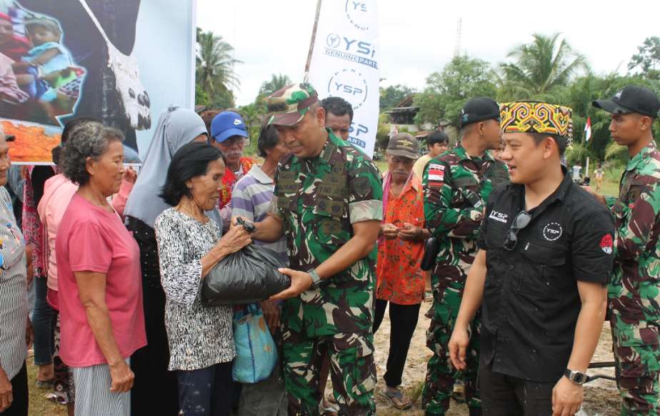 Selain memasak, kegiatan dilanjutkan dengan penyaluran paket sembako kepada masyarakat perbatasan. Bantuan ini diharapkan dapat meringankan beban ekonomi warga sekaligus mempererat hubungan antara TNI dan rakyat.