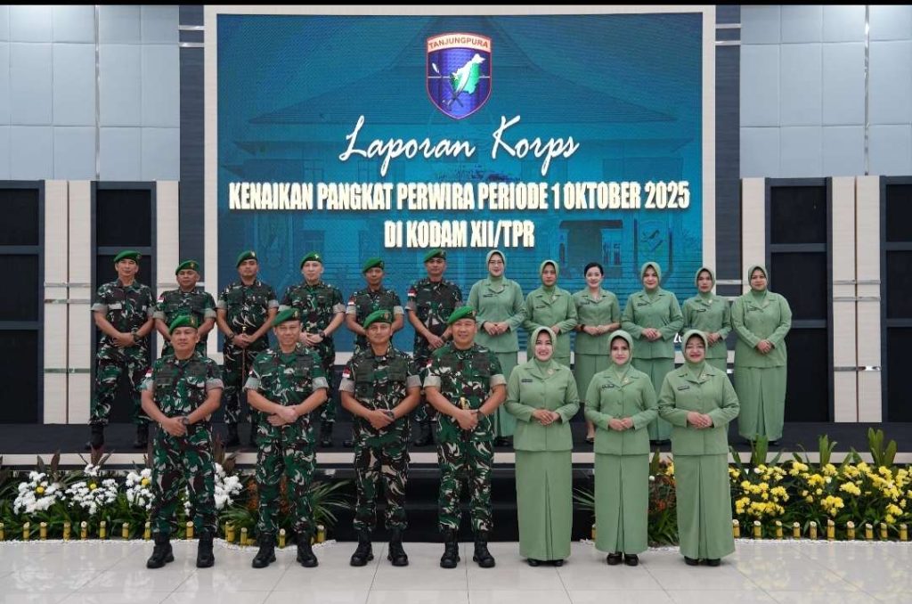 Mensyukuri hal tersebut, Perwira jajaran Kodam XII/Tanjungpura yang pada periode 1 Oktober 2025 ini mendapat kenaikan pangkat melaksanakan Syukuran Laporan Korps Kenaikan Pangkat Perwira. Acara dipimpin Pangdam XII/Tpr Mayjen TNI Jamallulael, S.Sos., M.Si., di Aula Sudirman, Makodam XII/Tpr.