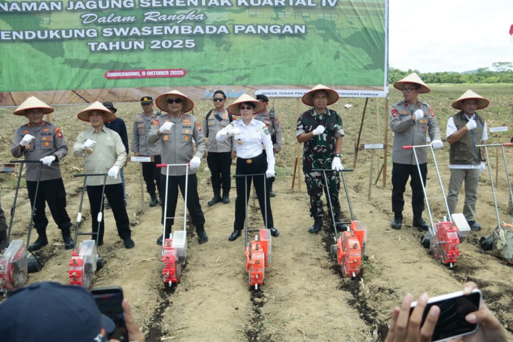 Singkawang, Kalbar [SKN] – Polda Kalbar, Guna mendukung program prioritas Presiden RI di bidang Swasembada Pangan, Kepolisian Daerah Kalimantan Barat bersama Pemerintah Provinsi dan Pemerintah Kota Singkawang menggelar kegiatan Penanaman Jagung Serentak Kuartal IV Tahun 2025, berpusat pada lahan seluas 4 hektar di Jl. Air Merah, Kelurahan Pangmilang, Kecamatan Singkawang Selatan. Kota Singkawang, pada Rabu (08/10/2025)