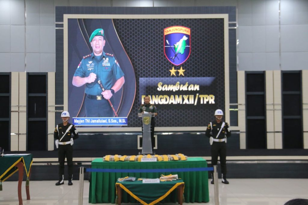 Dihadapan awak media, Pangdam XII/Tpr Mayjen TNI Jamallulael mengucapkan terimakasih kepada seluruh jajaran serta BNN, kepolisian, bea cukai, satgas Intel dari BIN, BAIS, Kodam dan Korem serta Satgas Teritorial atas keberhasilan pengungkapan kasus tersebut.