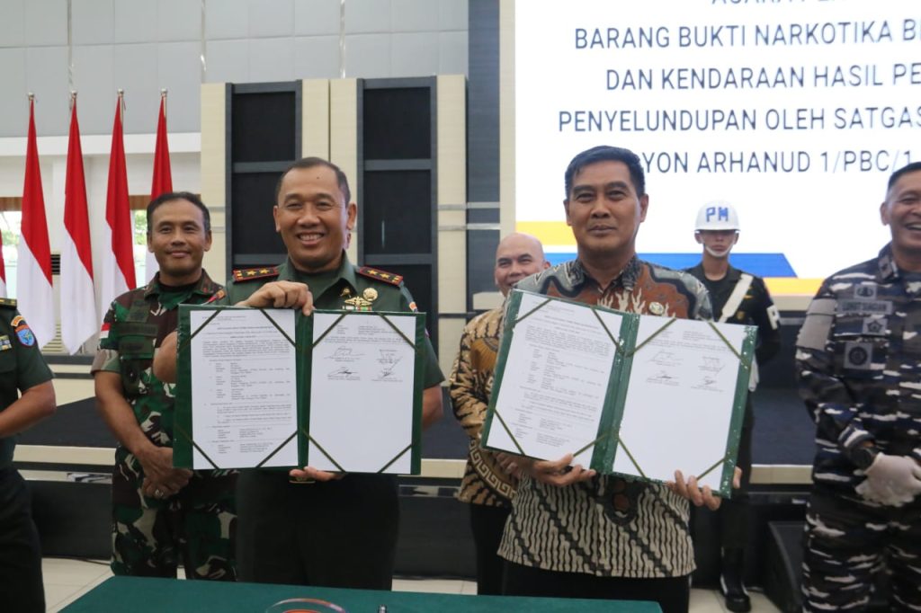 Pada Kamis (27/11/2025), Pangdam XII/Tanjungpura, Mayjen TNI Jamallulael, S.Sos., M.Si., secara resmi menyerahkan seluruh barang bukti fantastis ini dan tiga tersangka kepada Kepala Badan Narkotika Nasional Provinsi (BNNP) Kalimantan Barat, Brigjen Pol Totok Lisdiarto. Proses serah terima dilakukan di Aula Sudirman, Makodam XII/Tpr, menandai langkah awal proses hukum lebih lanjut.